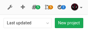 In your dashboard, click the green New project button or use the plus icon in the upper right corner of the navigation bar.