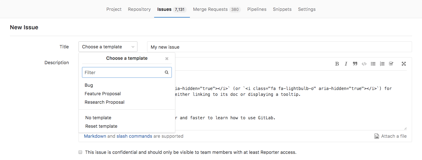 For instance, let's assume you have a public project but want to start a discussion on something you don't want to be public. With Confidential Issues, you can discuss private matters among the project members, and still keep your project public, open to collaboration.